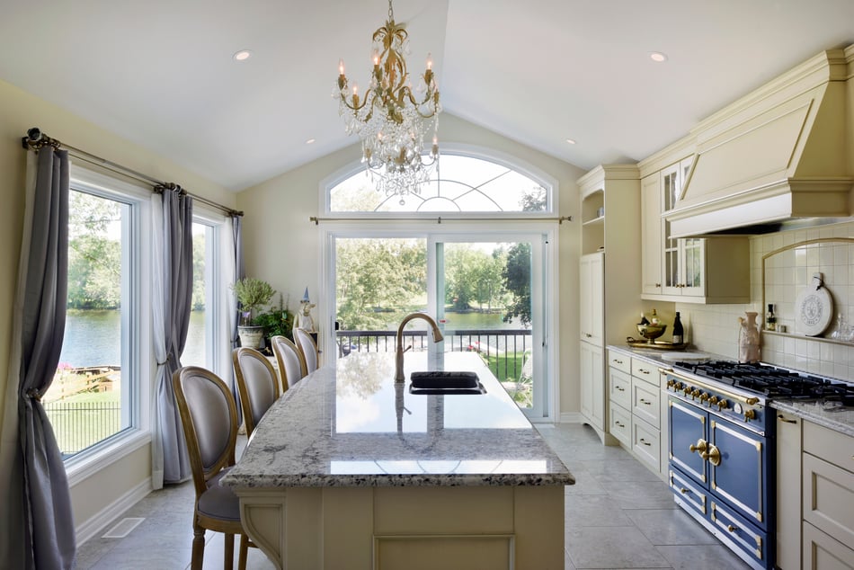 Light fixtures in a traditional kitchen design should be ornate and decorative, giving off a vintage, yet sophisticated look and feel. An elegant and dazzling chandelier is a fantastic focal point in a traditional kitchen, tying the entire room together.