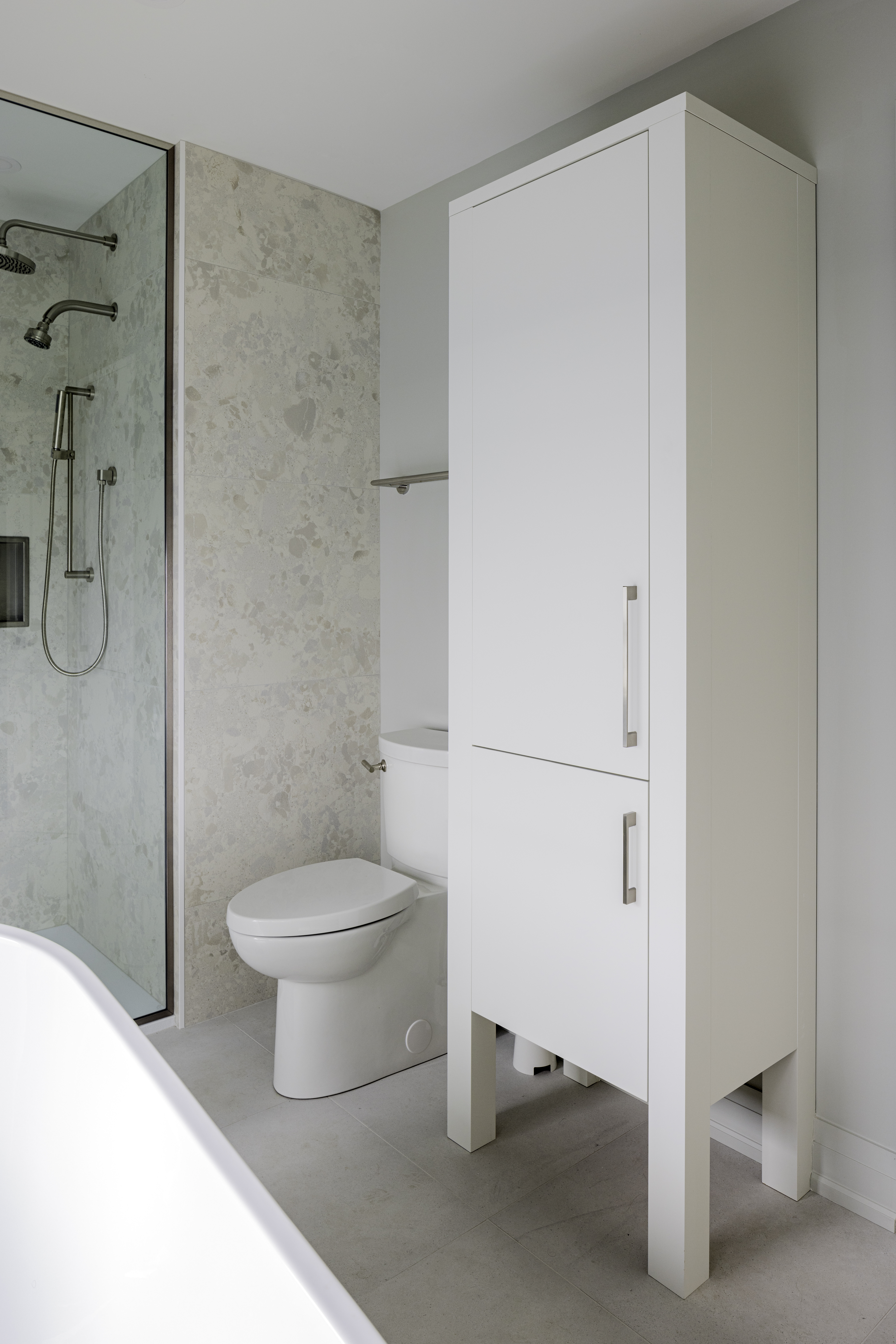 This bathroom exemplifies how deliberate, nuanced design choices can transform an ordinary space into a serene, sophisticated sanctuary. It stands as a masterclass in balancing aesthetic appeal with practical functionality, providing an elegant retreat that is both beautiful and user-friendly.