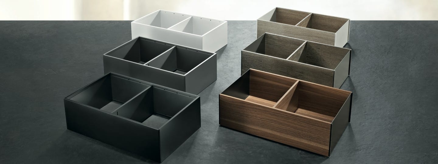 Each product line offers interior divider frames as well as unique accessories from cutlery dividers to spice holders, and much more. All are designed to fit specifically for their respective drawer and high-fronted pull out systems and aren’t compatible for other drawer systems.